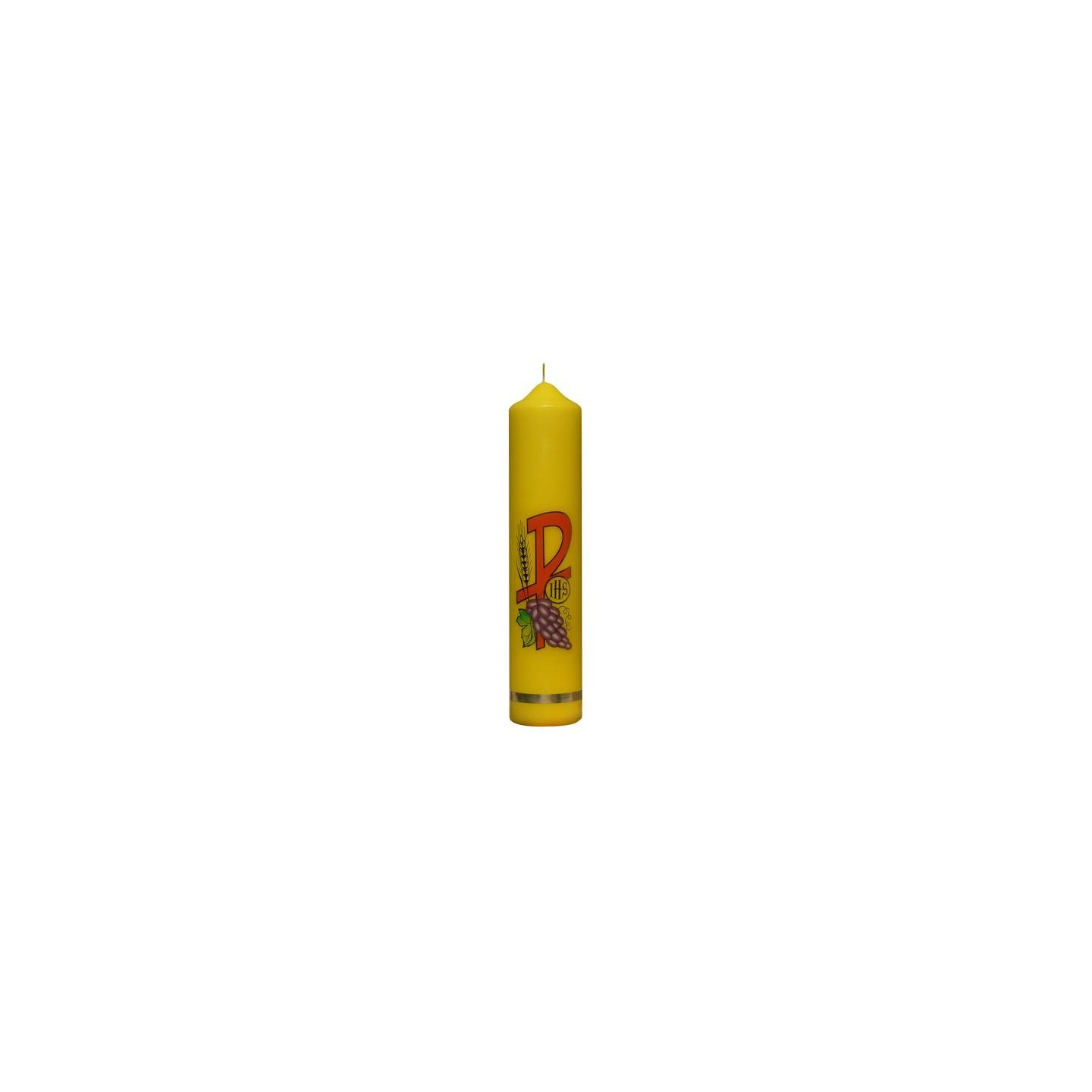 Masa [kg] - 0,85 kgWysokość [mm] - 300 mmśrednica [mm] - 64 mmIlość szt w opakowaniu - 24 sztŚwieca jest wykonana metodą prasowaną. Występuje w kolorze białym i żółtym. Kolorowa jest jedynie zewnętrzna otulina świecy.