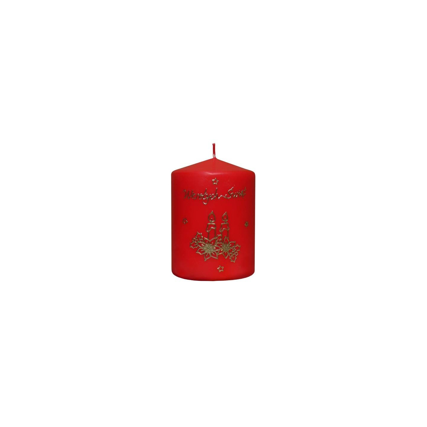 Masa [kg] - 0.43 kgWysokość [mm] - 105 mmśrednica [mm] - 80 mmIlość szt w opakowaniu - 12 sztŚwieca jest wykonana metodą prasowaną. Występuje w kolorach białym, ecru i czerwonym. Różne wzory naklejek ażurowych w klorze złotym i srebrnym.